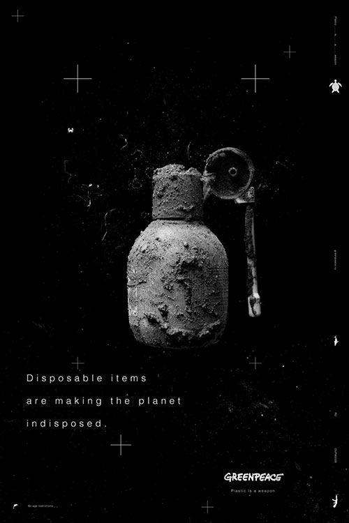描述:海报旨在提倡人们减少塑料制品的使用,不要滥用塑料武器。