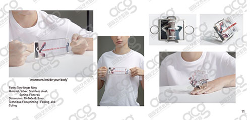 将3种不同的材料与金属结构又进行了单独结合和多种方式的重组,产生了更多的轻的量度。并将金属做出与新材料相同的肌理外形,以产生明显的重量上的对比。又将所有的材料与金属进行了不同穿戴形式的结合,以体验不同大小,不同形态,不同体积的各种‘轻’程度。也许轻的定义也可以不仅仅局限在数字之中,也可以存在于每个人度量之中。