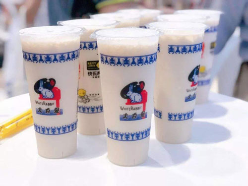 作为一个60岁的老品牌,大白兔通过举办艺术展,运用各种互动游戏、巨大的白兔公仔和裹满糖纸的商场柱子,在个大商场推出了口红、香水、包袋、身体乳等周边,立即走红网络,一杯定价20元左右的奶茶被炒到150元的高价,现场充斥了从早上7点甚至更早就前来排队的黄牛,他们加价的理由十分“充分”——买一杯奶茶需要等待至少5个小时。