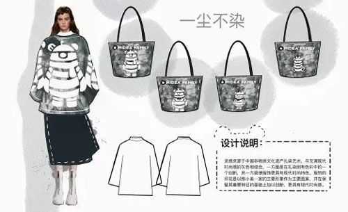 介绍:扎染艺术与充满现代时尚感的灰色相结合,印花是以熊小美一家的主要形象作为主要图案,并在保留其重要特征的基础上加以创新。